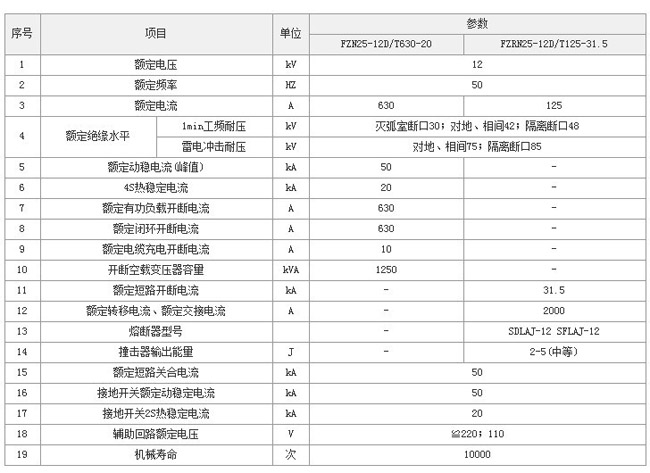 FZN25 FZRN25型真空負(fù)荷開(kāi)關(guān)和組合電器,適用三相交流50HZ環(huán)網(wǎng)或終端供電和工業(yè)用電設(shè)備中,作負(fù)荷控制和短路保護(hù)之用,符合開(kāi)關(guān)分合負(fù)荷,閉環(huán)電流,空載變壓器和電纜充電電流。組合電器可以 開(kāi)斷直至額定短路電流的任何電流。采用直動(dòng)式隔離斷口和真空滅弧聯(lián)動(dòng)。具有手動(dòng)和電動(dòng)功能。