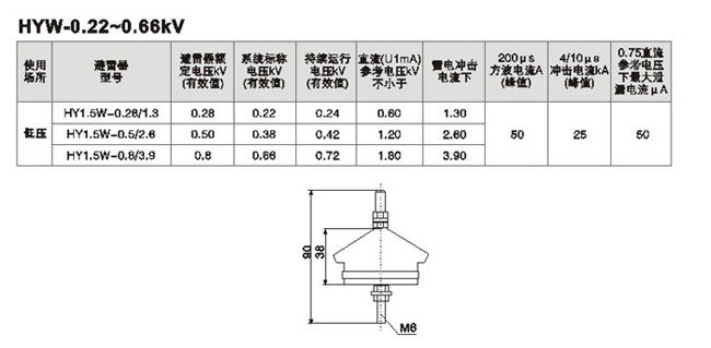 HY1.5W-0.22~0.66KV氧化鋅避雷器