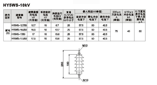 HY5WS-17/50(10kv) 氧化鋅避雷器